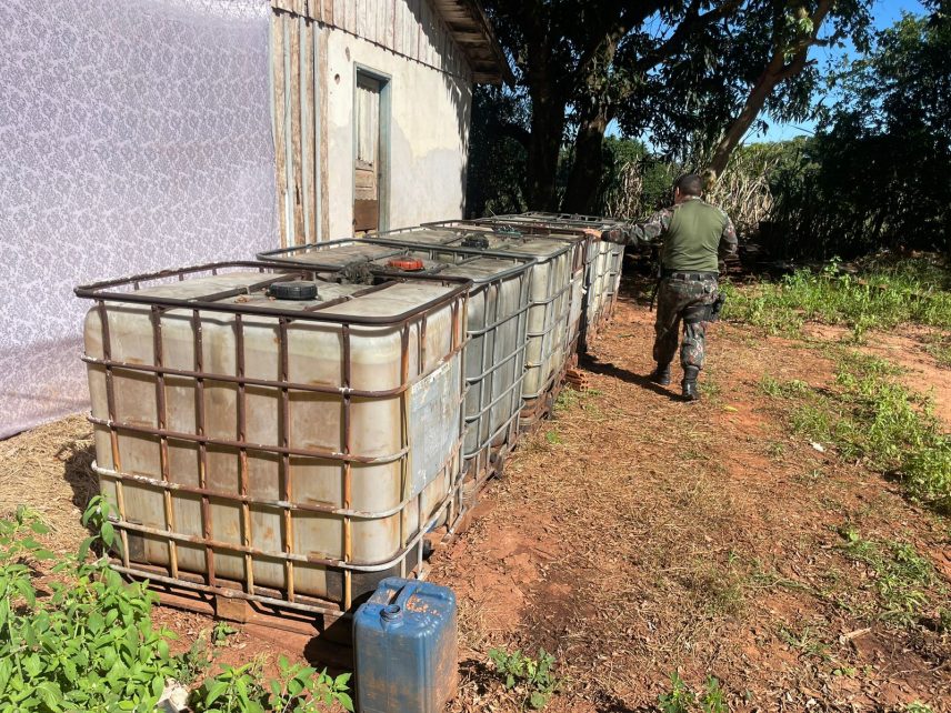Já em Mundo Novo, durante o patrulhamento na BR 163, a PMA realizou uma vistoria em um sítio onde constatou 05 bombonas plásticas de 1.000 litros contendo óleos lubrificantes usados e 02 bombonas de 1.000 litros vazias. O produto estava armazenado de forma irregular, expostos às intempéries climáticas e em contato direto com o solo. O proprietário, então, foi autuado em R$ 5.000,00 e responderá pelo crime ambiental cuja pena prevista é de reclusão de um a quatro anos. Todo material foi apreendido e o responsável notificado a dar destinação correta e armazenamento adequado aos produtos.